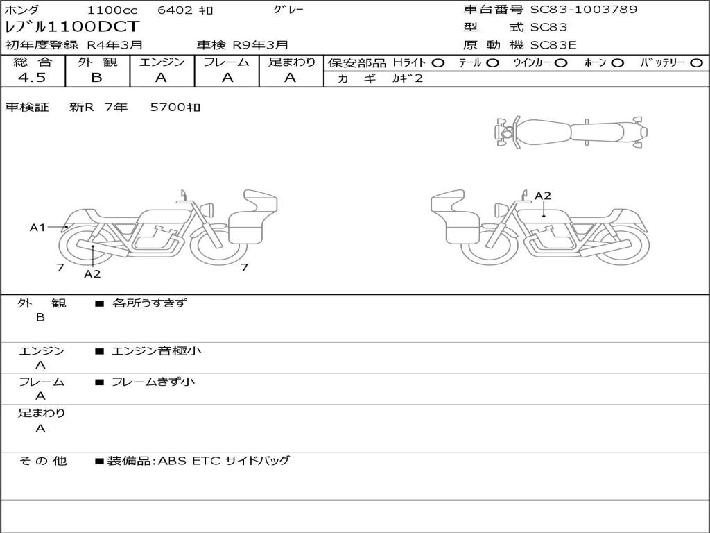 | Номер рамы / VIN | SC83-1003789 |