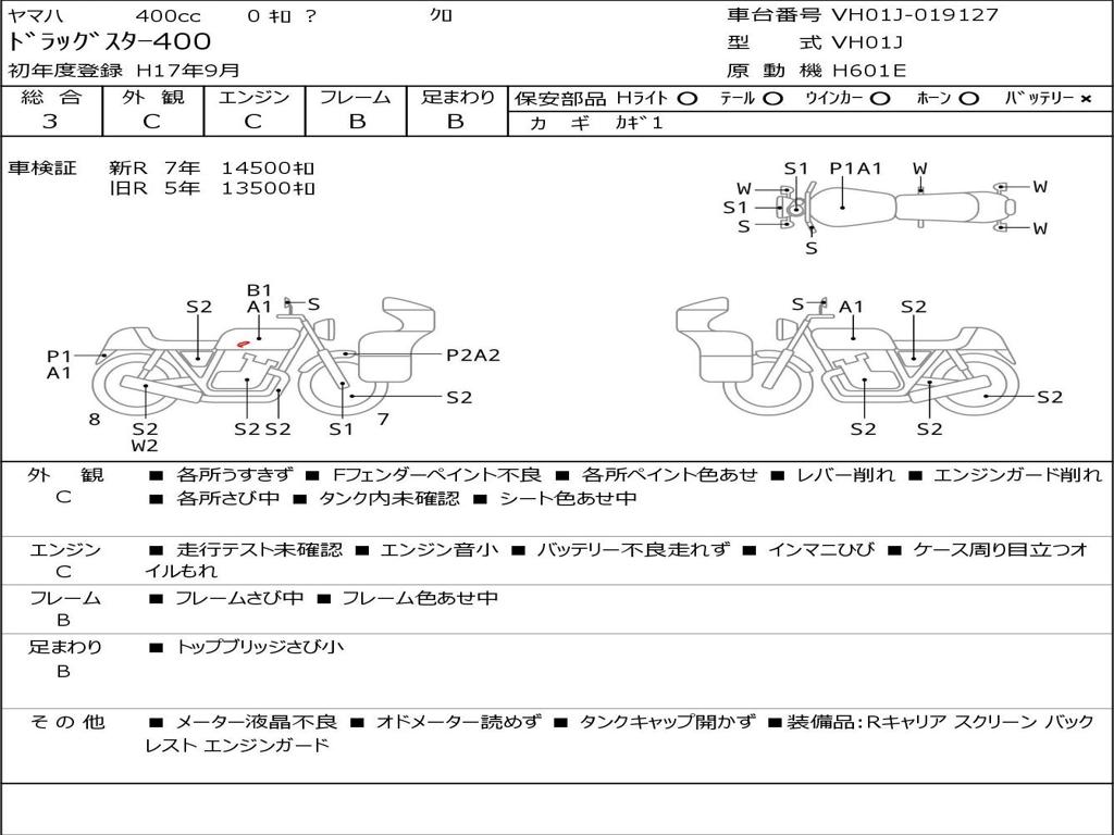 | Номер рамы / VIN | VH01J-019127 |