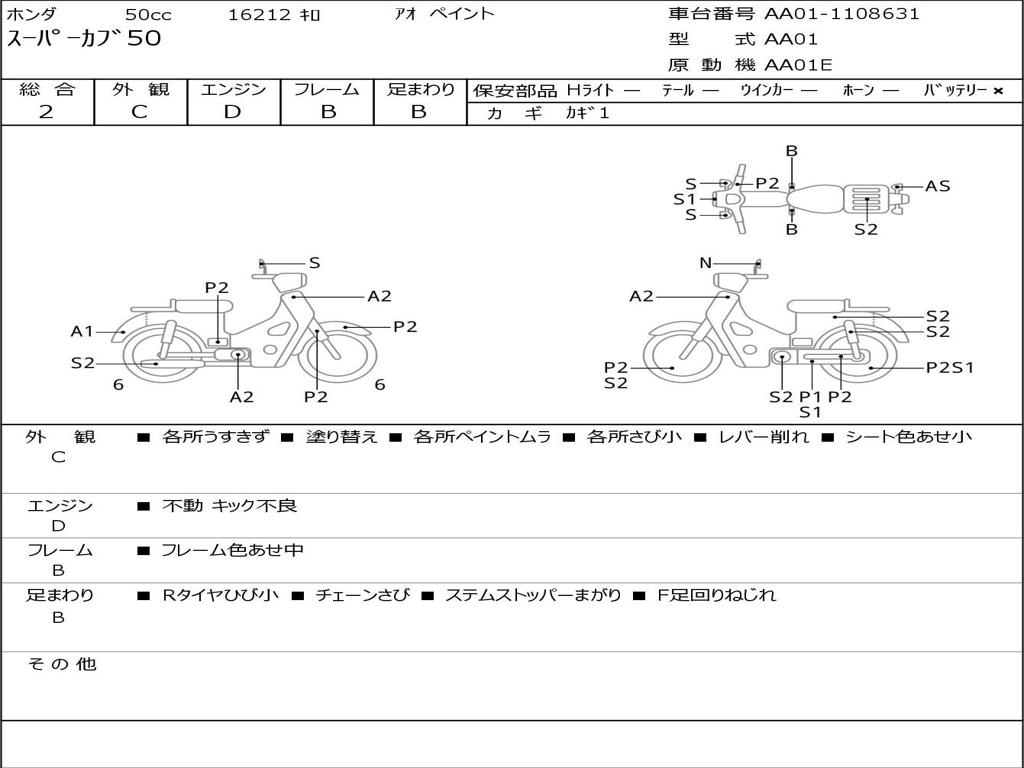 | Номер рамы / VIN | AA01-1108631 |
