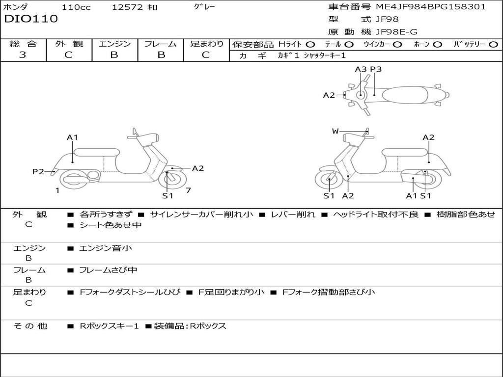 | Номер рамы / VIN | ME4JF984BPG158301 |
