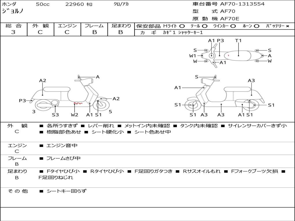 | Номер рамы / VIN | AF70-1313554 |