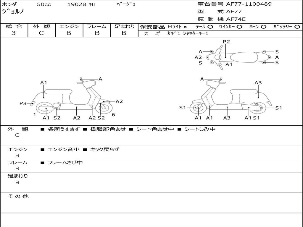 | Номер рамы / VIN | AF77-1100489 |