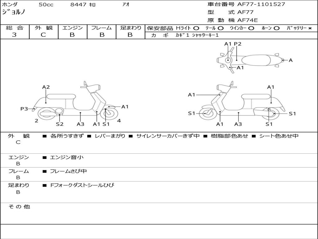 | Номер рамы / VIN | AF77-1101527 |