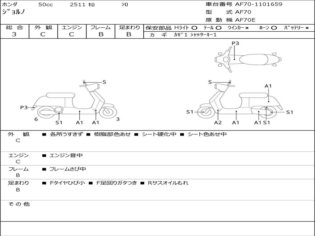 | Номер рамы / VIN | AF70-1101659 |