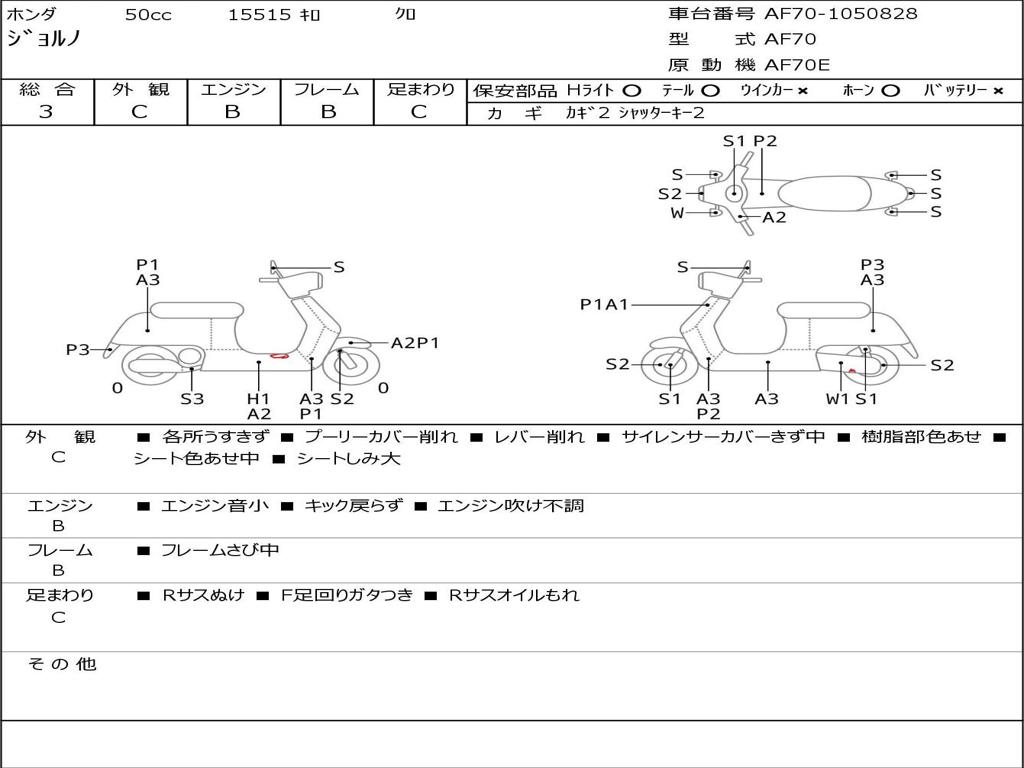 | Номер рамы / VIN | AF70-1050828 |