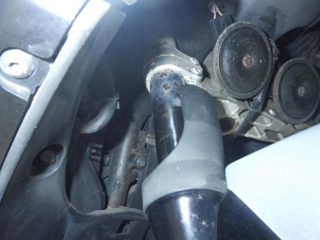 | внешняя часть вилки | царапины, следы коррозии <много>, потек масла |