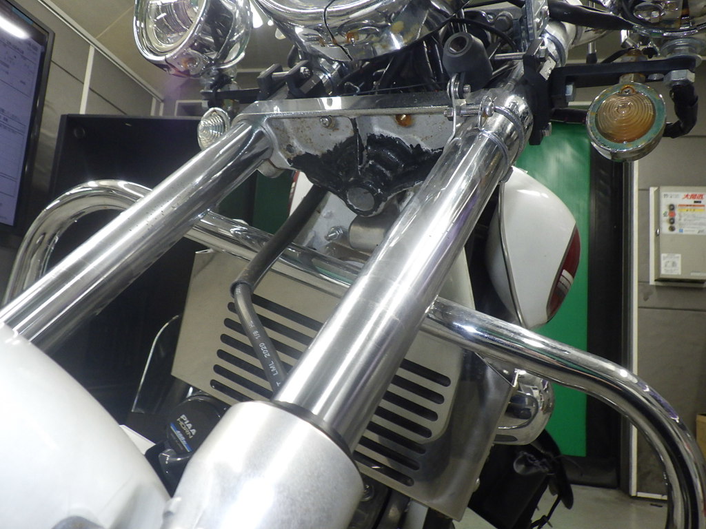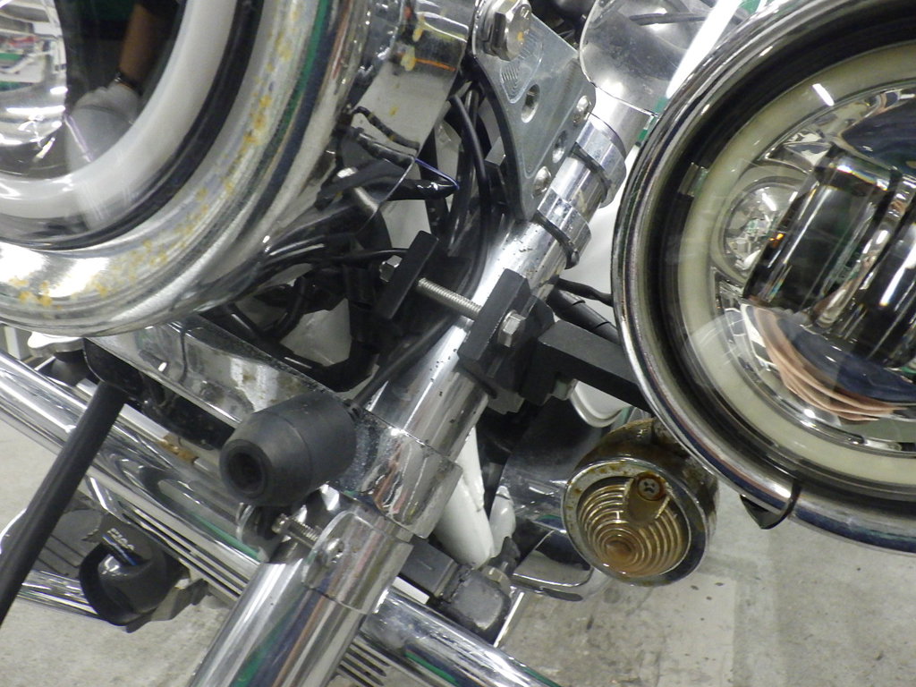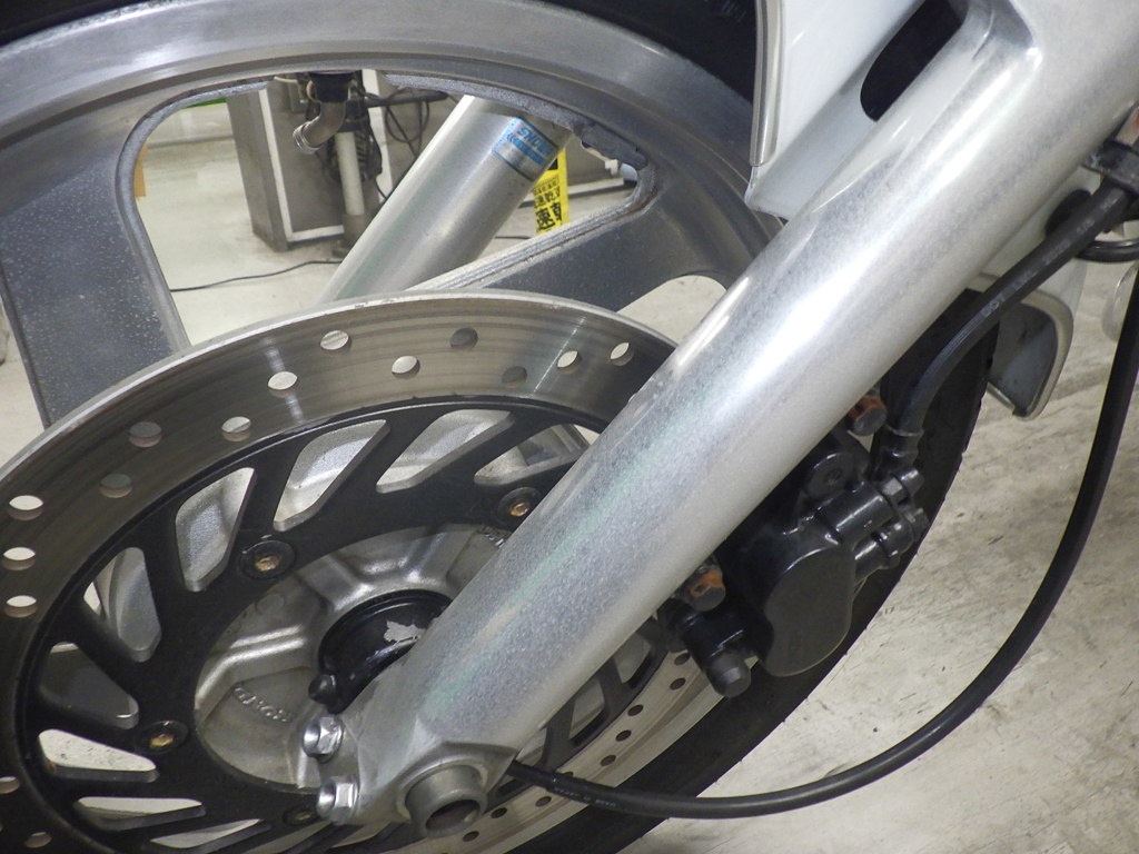 | внешняя часть вилки | следы коррозии <много>, потек масла |