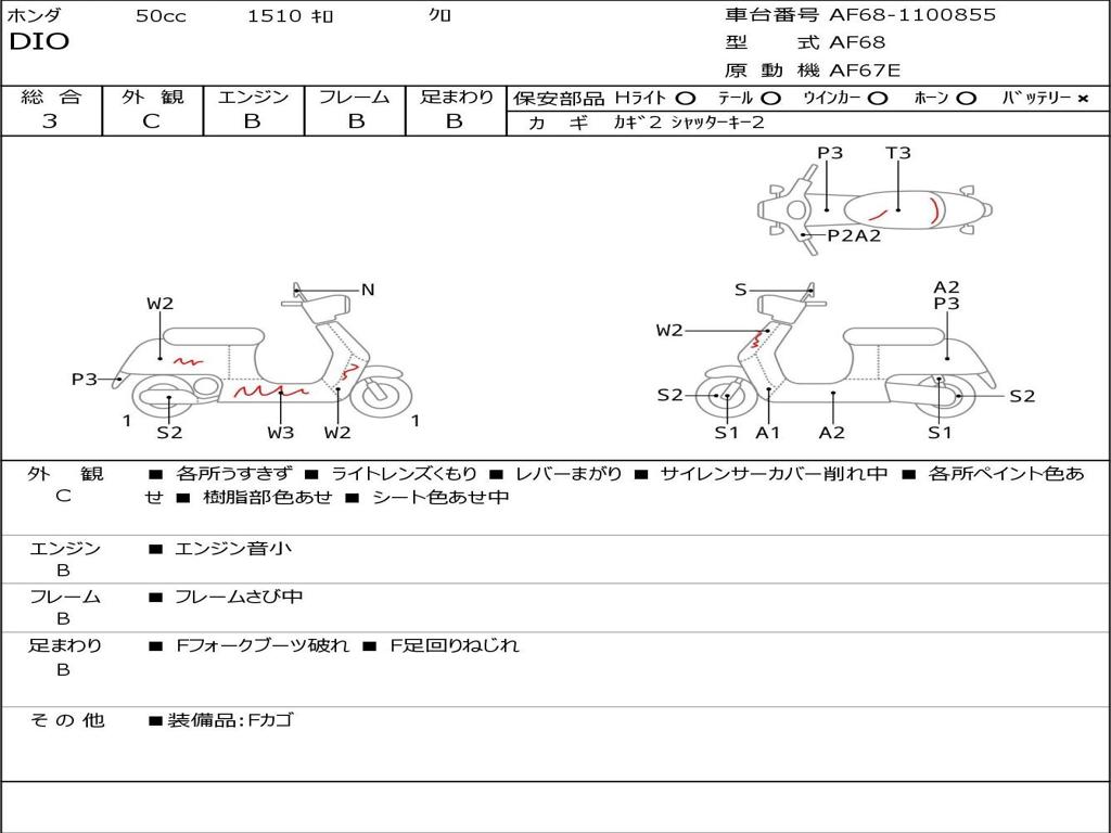 | Номер рамы / VIN | AF68-1100855 |
